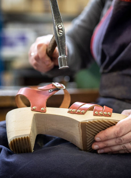 Des premiers sabots de bois aux sandales de cuir brillant à paillettes, c'est d'abord l'histoire d'un savoir-faire, aujourd'hui unique en France. Celui que la famille Audouin s'attache à faire vivre depuis cinq générations. C'est aussi l'histoire d'une chaussure dont les lignes ont su se réinventer dans un élégant mariage entre authenticité et modernité.