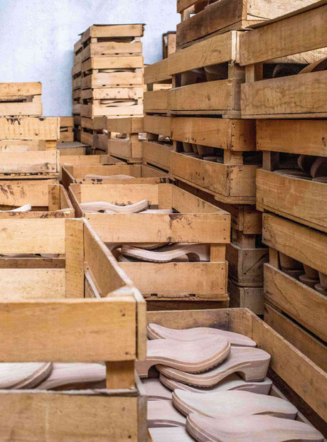 Le bois, qui sert à la fabrication de nos semelles, vient des forêts domaniales locales. Nous l'achetons exclusivement à des exploitants forestiers certifiés pour la gestion durable des forêts contribuant à assurer le renouvellement et l'entretien des forêts. Les arbres sont coupés à maturité et, après chaque coupe, un nouvel arbre est planté. Nous recyclons également tous nos déchets bois dans l'alimentation de la chaudière pour le chauffage de l'atelier.