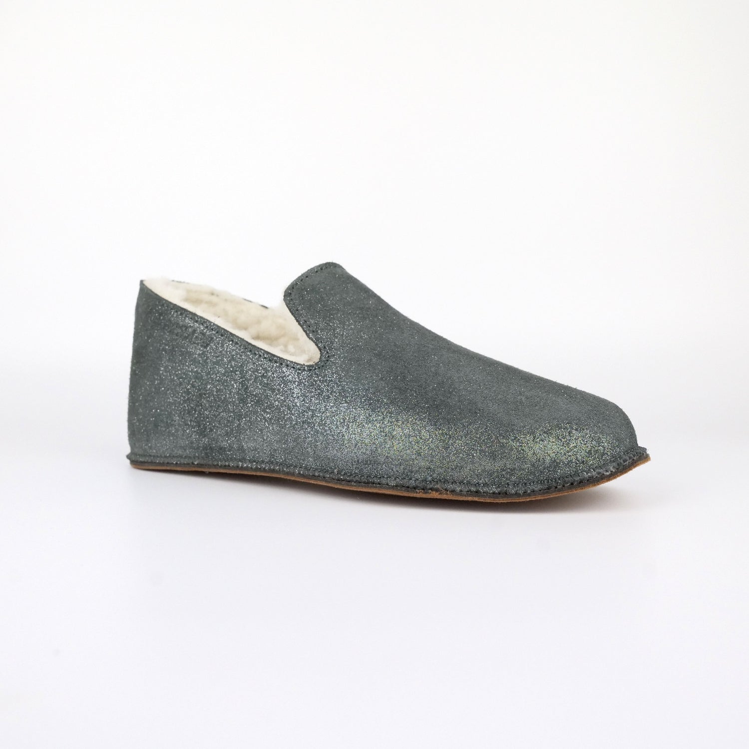 Vous aimez ce qui brille ? Vous allez adorer le dessus de cuir velours à paillettes de ce chausson pour femme à 100 % fabrication française, qui capte la lumière pour un effet scintillant irrésistible.