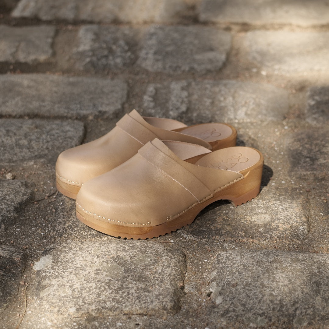 Sur le sabot Annie, l’alliance d’un dessus en cuir et d’une semelle en bois flexible basse promet à la fois un bon maintien du pied tout au long de la journée et une souplesse longue durée. Cette chaussure de belle qualité conserve également une allure féminine qui flatte de nombreuses silhouettes.