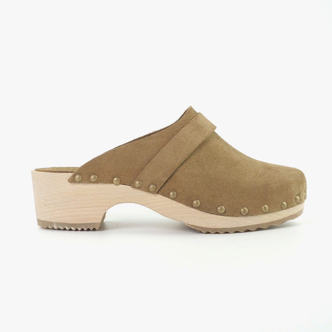 - Semelle en bois : l’entretien se fait avec une éponge et de l’eau savonneuse. Le bois peut être légèrement poncé si vous souhaitez retirer les marques et la saleté. Après le ponçage, appliquez au besoin une cire à meuble incolore sur les semelles de vos sabots Camille pour femme.